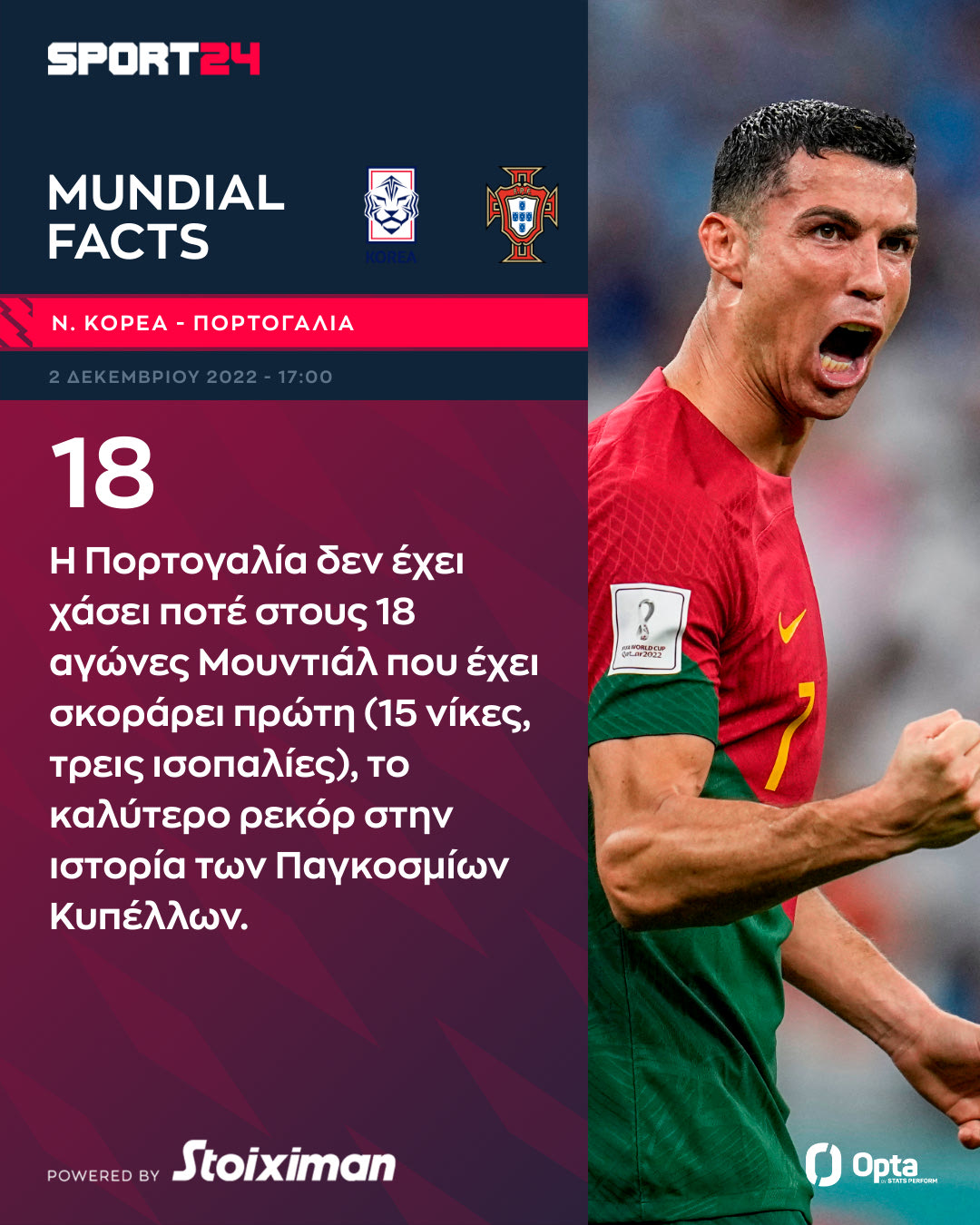 Η Νότια Κορέα και η Πορτογαλία αναμετρώνται με φόντο την πρόκριση στους 16 του Παγκοσμίου Κυπέλλου. Δείτε χρήσιμα στοιχεία για το παιχνίδι με τη βοήθεια της Opta.