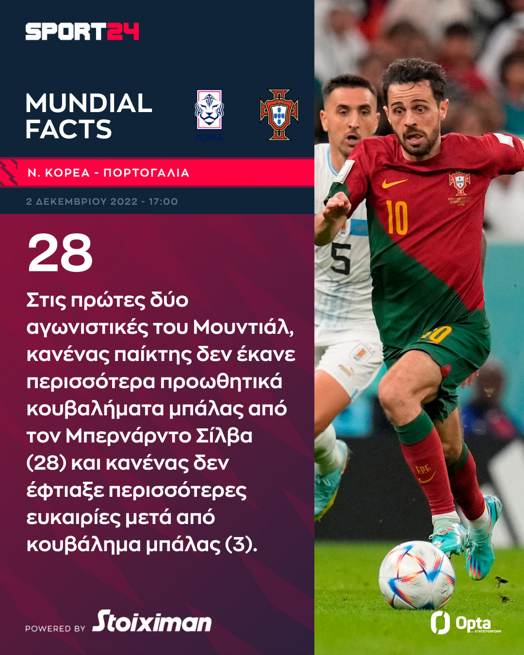 Μουντιάλ 2022, Νότια Κορέα – Πορτογαλία: Ο Μπερνάρντο Σίλβα κάνει στο Κατάρ ό,τι δεν πράττει κανένας άλλος