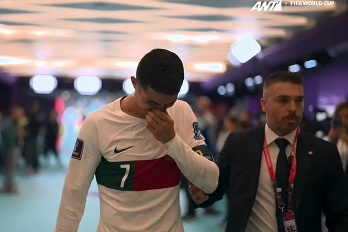 Ο Κριστιάνο Ρονάλντο δεν άντεξε τον αποκλεισμό της Πορτογαλίας στα προημιτελικά του Μουντιάλ μετά την ήττα από το Μαρόκο με 1-0 και ξέσπασε σε κλάματα στη φυσούνα, καθώς κατευθυνόταν στα αποδυτήρια.
