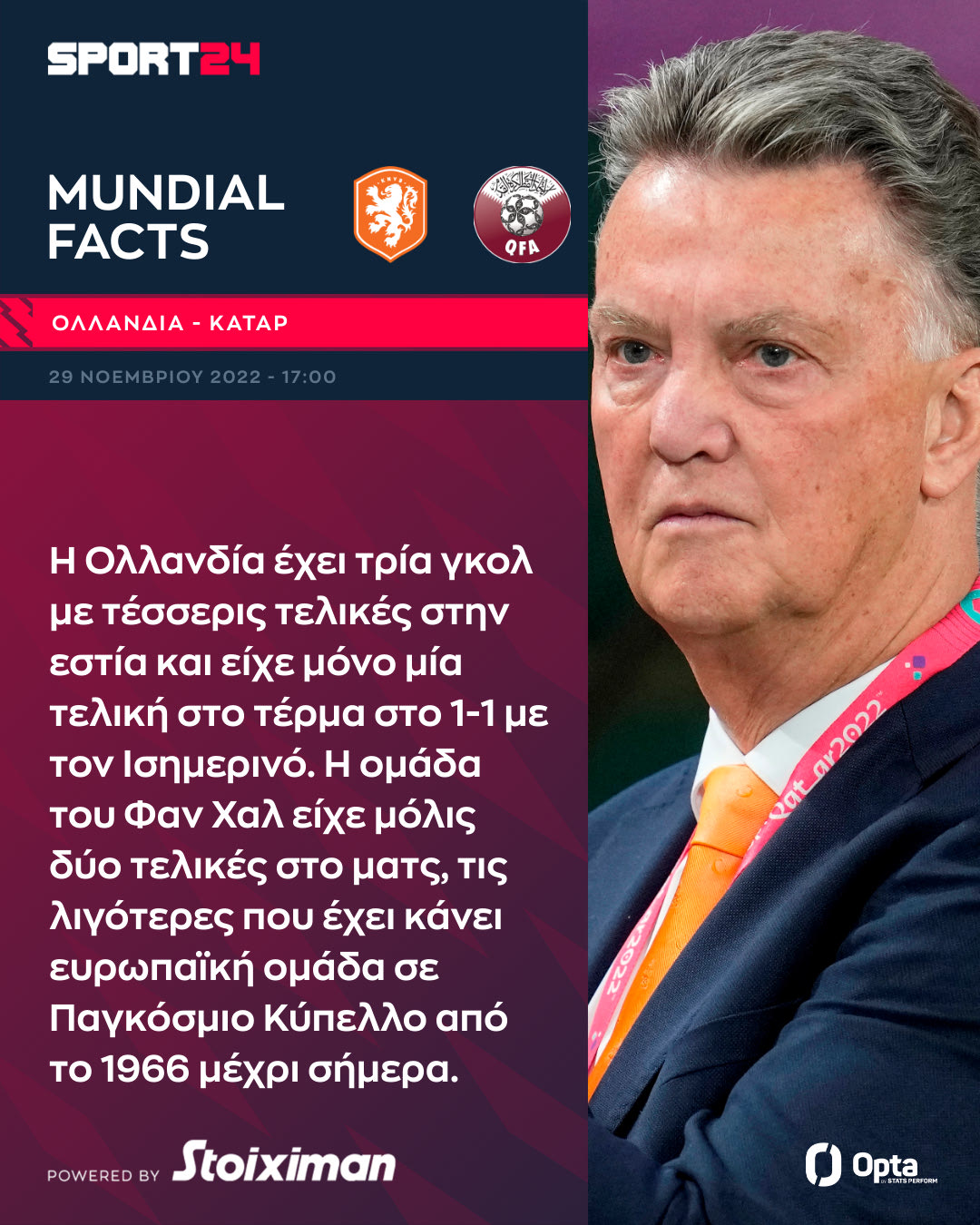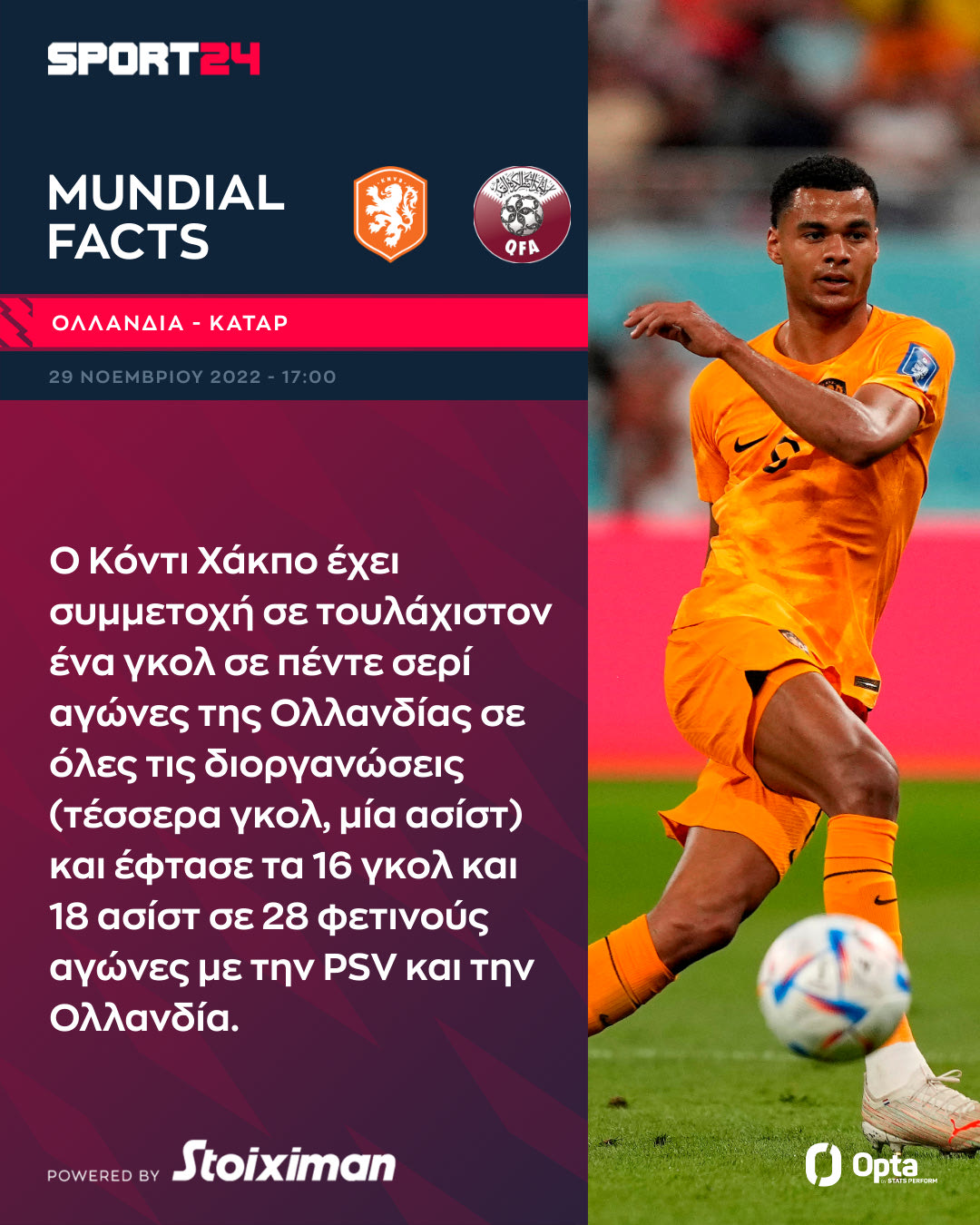 Η Ολλανδία αντιμετωπίζει το Κατάρ (29/11, 17:00, ANT1, ANT1+, LIVE SPORT24) και θέλει να τσεκάρει το εισιτήριο για τη φάση των 16 του Παγκοσμίου Κυπέλλου απέναντι στους αποκλεισμένους διοργανωτές.