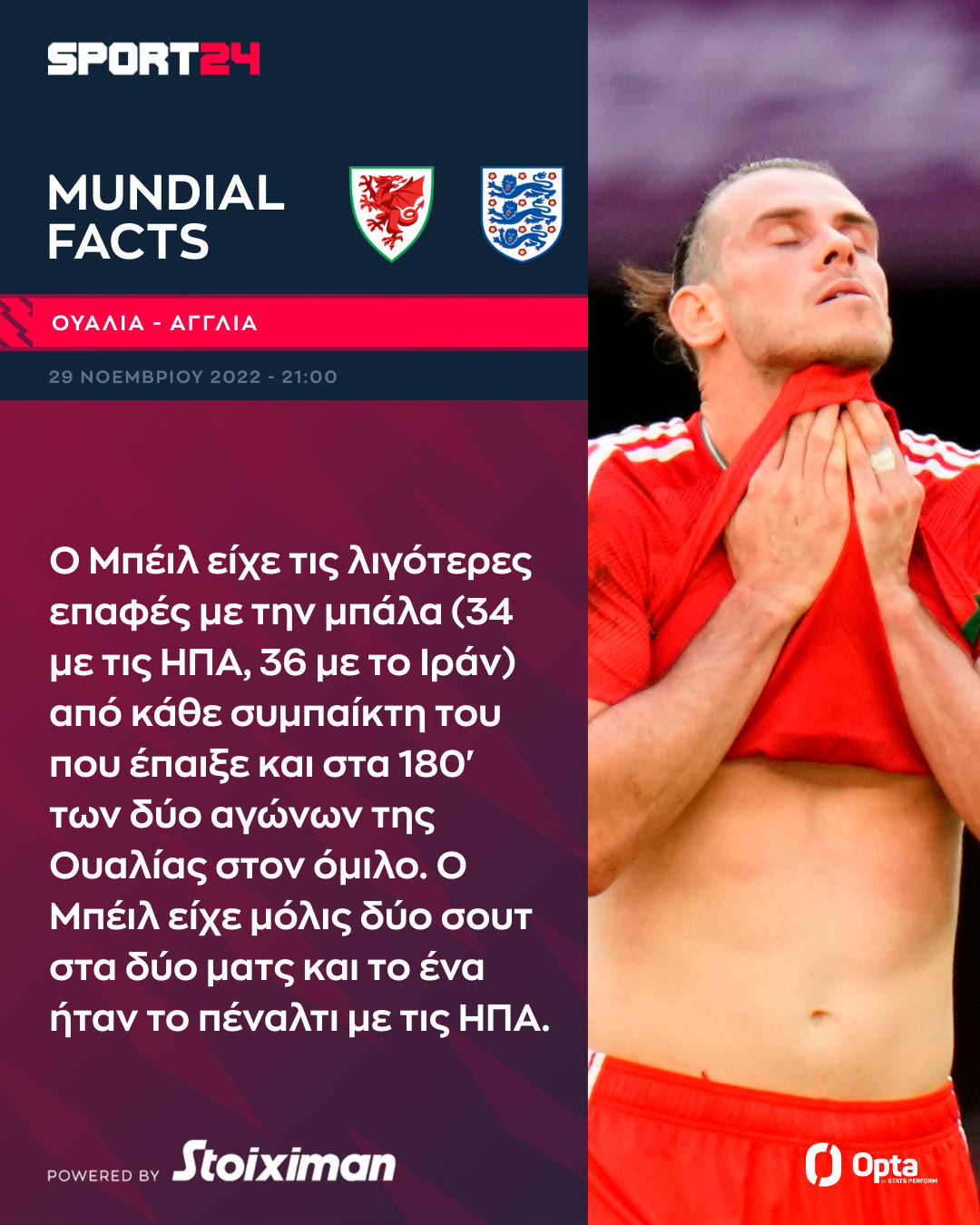 Ουαλία και Αγγλία (29/11, 21:00, ΑΝΤ1/ΑΝΤ1+, LIVE SPORT24) κοντράρονται σ' ένα βρετανικό ντέρμπι για την 2η αγωνιστική του δευτέρου ομίλου του Παγκοσμίου Κυπέλλου. Πάμε να δούμε ορισμένα χρήσιμα facts για το παιχνίδι.