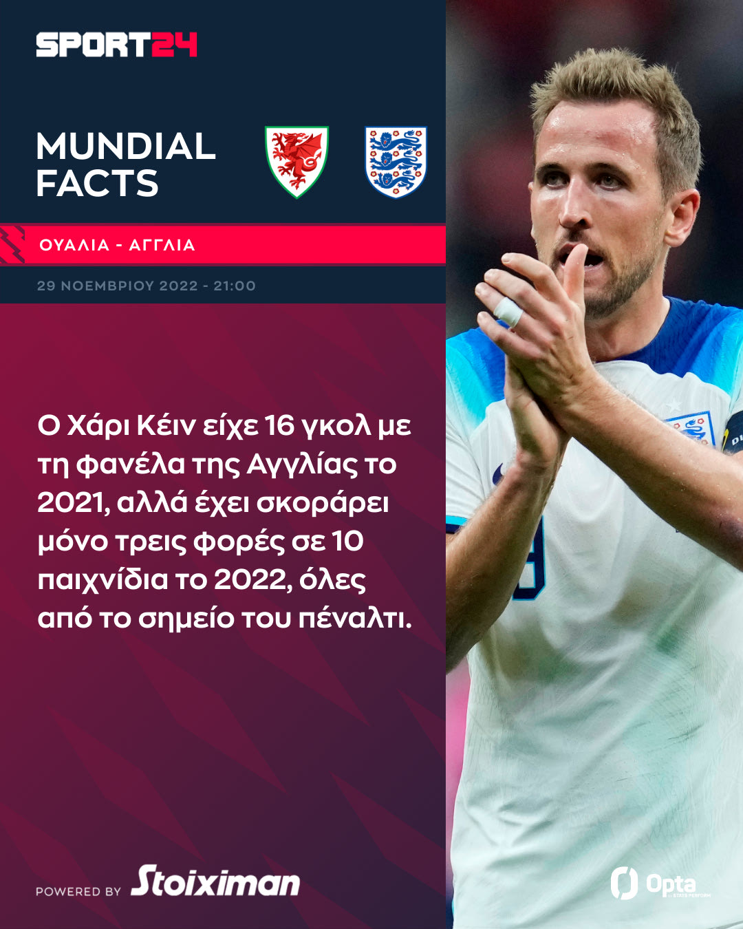 Η Αγγλία θέλει να σιγουρέψει την πρόκριση της στη φάση των 16 του Παγκοσμίου Κυπέλλου με αντίπαλο την Ουαλία (29/11, 21:00, ΑΝΤ1/ΑΝΤ1+, LIVE SPORT24), η οποία διατηρεί ελπίδες, έστω και λιγοστές.