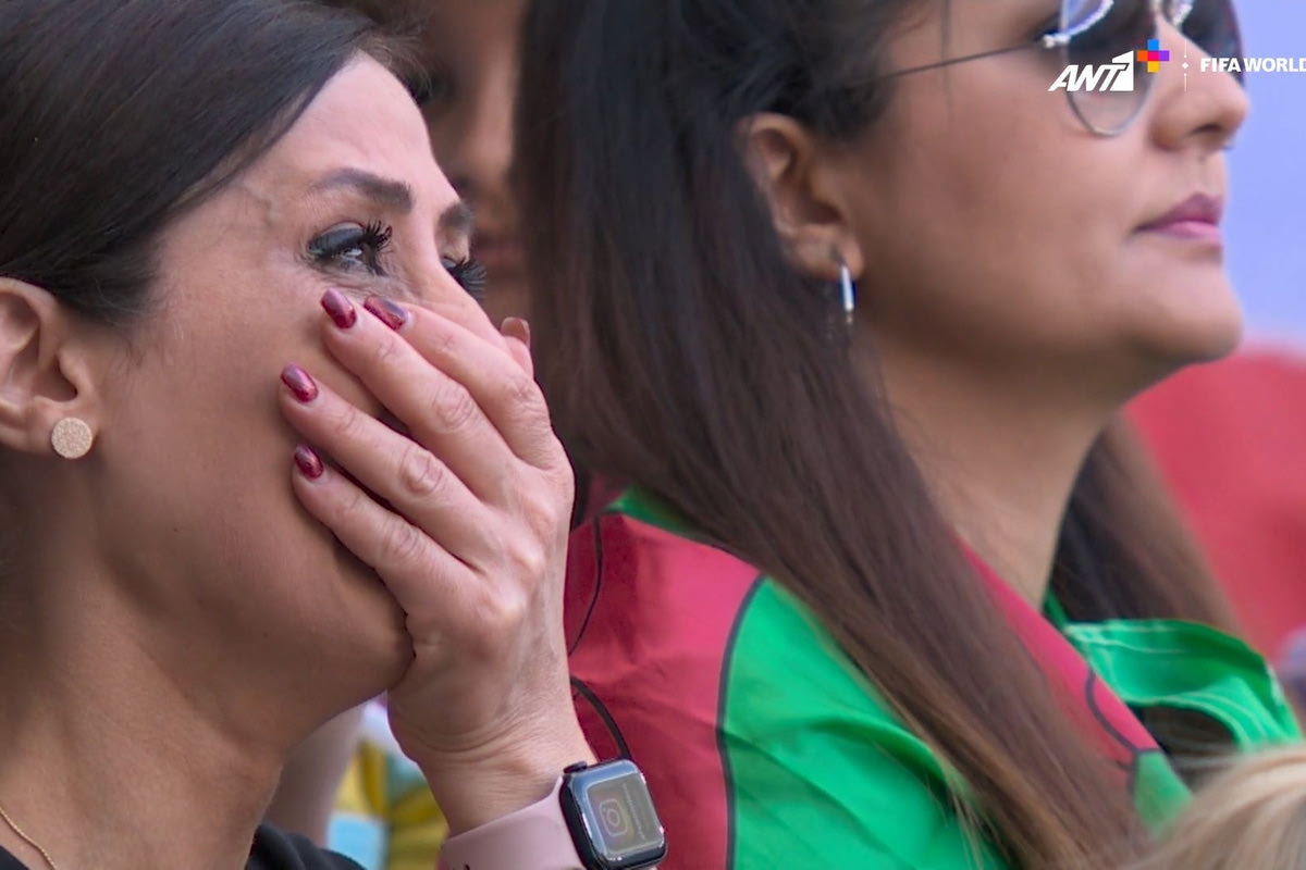 Αποδοκιμασίες ακούστηκαν κατά τη διάρκεια ανάκρουσης του εθνικού ύμνου του Ιράν, ενώ την ίδια ώρα έκλαιγαν Ιρανοί φίλαθλοι στις κερκίδες.