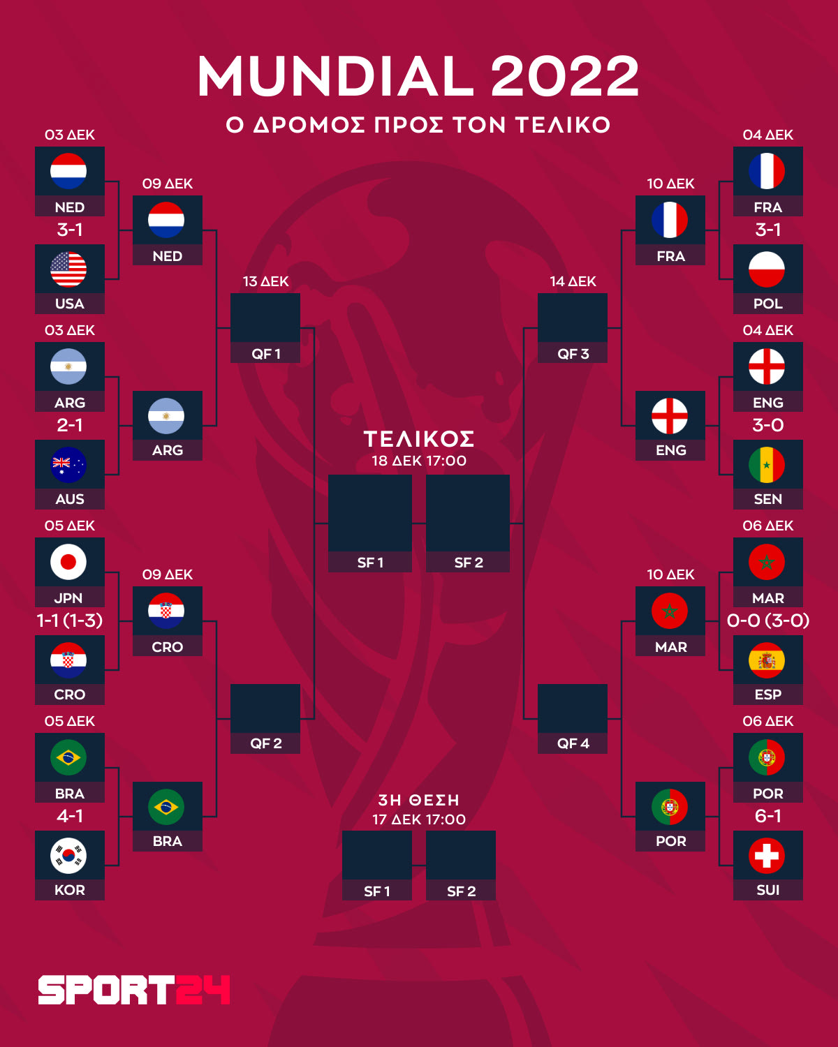 Το SPORT24 παίζει μόνο Μουντιάλ 2022 και σε πάει στο Παγκόσμιο Κύπελλο ! Δες αναλυτικα το Πρόγραμμα του Μουντιάλ και τα αποτελέσματα των αγώνων του Μουντιάλ, Παρακολούθησε το Μουντιάλ live στο Matchcenter, κάνε εγγραφή στα push notifications του SPORT24 και στο Youtube κανάλι για να ενημερώνεσαι και να μη χάνεις καμία αθλητική στιγμή!