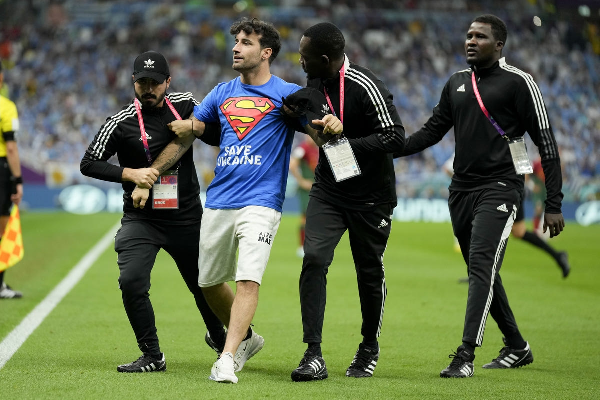Ο αγώνας της Πορτογαλίας με την Ουρουγουάη διακόπηκε για λίγα δευτερόλεπτα στο 50ο λεπτό. Ένας οπαδός εισέβαλε στον αγωνιστικό χώρο με σημαία του ουρανίου τόξου, υπέρ της ΛΟΑΤΚΙ+ κοινότητας. Ο συγκεκριμένος οπαδός φορούσε φανέλα Superman, που έγραφε πάνω “σώστε την Ουκρανία” και “σεβαστείτε τις ιρανές γυναίκες”.