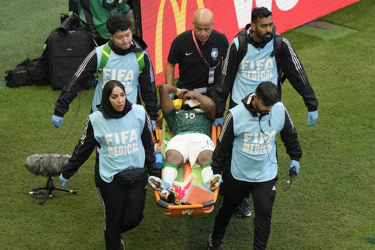 Ο Γιασέρ αλ Σαχρανί της Σαουδικής Αραβίας μεταφέρεται εκτός αγωνιστικού χώρου κόντρα στην Αργεντινή για τη φάση των ομίλων του Παγκοσμίου Κυπέλλου 2022 στο "Λουσαΐλ", Λουσαΐλ | Τρίτη 22 Νοεμβρίου 2022 © 2022/Luca Bruno/AP IMAGES