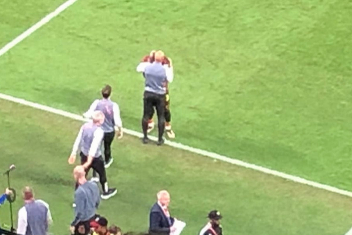 Ακολούθως, στο σημείο πλησίασαν κι άλλοι άνθρωποι του επιτελείου του Βελγίου για να παρηγορήσουν τον Λουκάκου, ο οποίος όμως ήταν απαρηγόρητος και κάποια στιγμή μάλιστα γονάτισε στο χορτάρι, παραμένοντας με σκυμμένο κεφάλι.