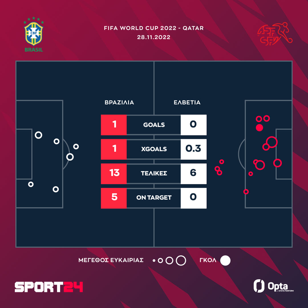 Τα xgoals του αγώνα Βραζιλία - Ελβετία OPTA/SPORT24