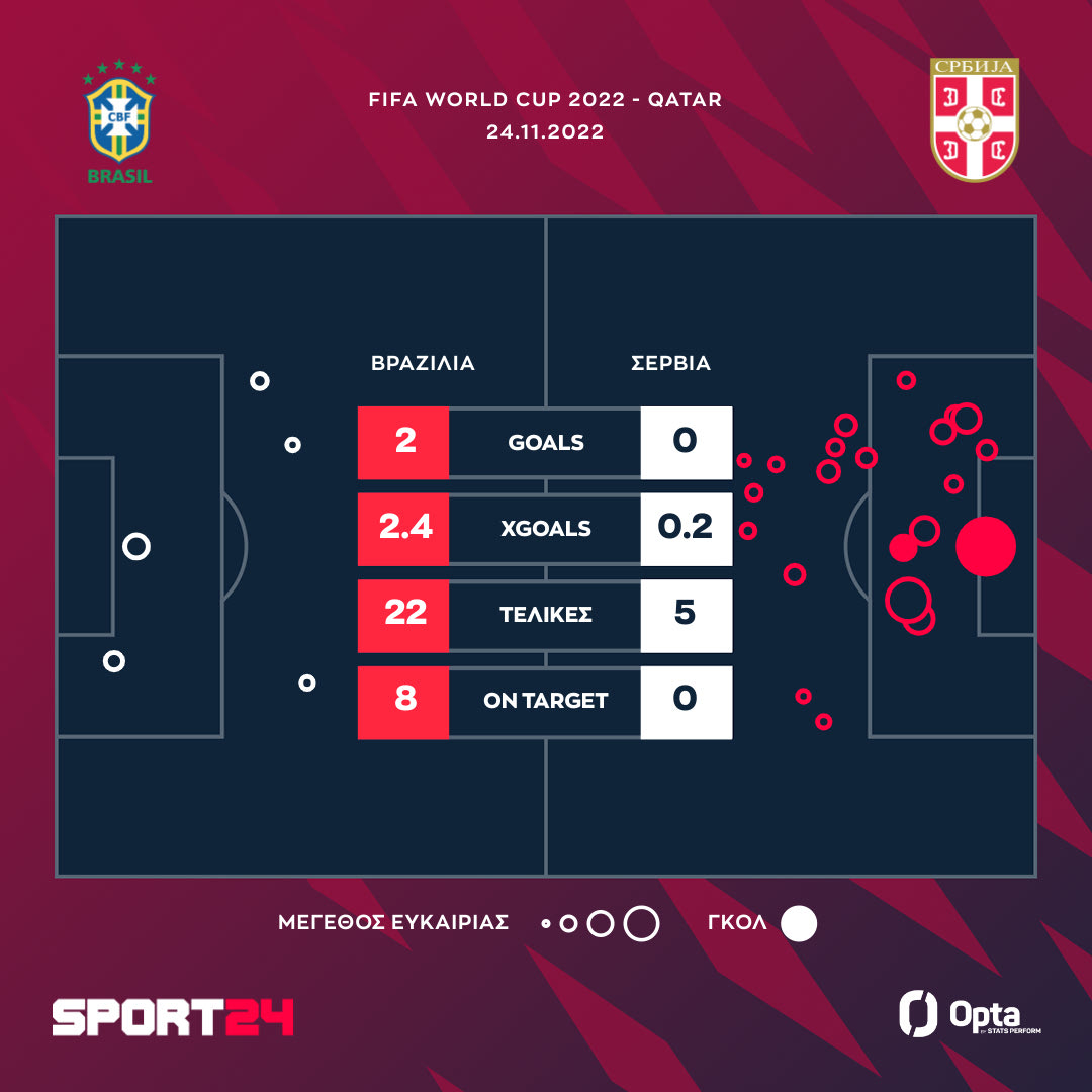 Η Βραζιλία έκανε ποδαρικό με το δεξί στο Παγκόσμιο Κύπελλο του Κατάρ. Η σελεσάο επικράτησε 2-0 της Σερβίας κάνοντας μία επιβλητική εμφάνιση, ειδικά στο δεύτερο μέρος της αναμέτρησης.