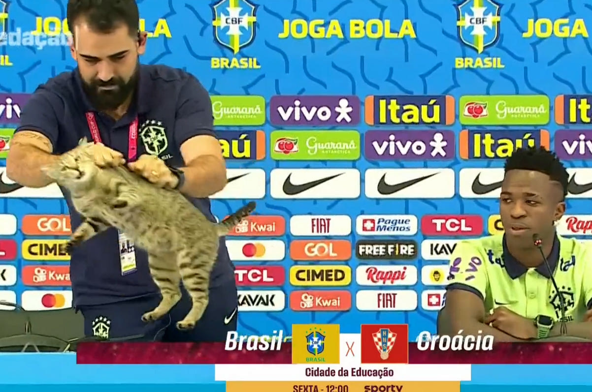 Μουντιάλ 2022, Βραζιλία: Γάτα εισέβαλε στη συνέντευξη Τύπου του Βινίσιους και ο pressofficer την πέταξε με άσχημο τρόπο από το τραπέζι