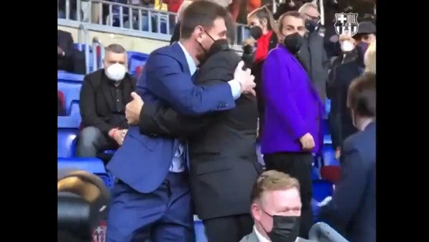 Τα βλέμματα τράβηξε η αγκαλιά του Τζοάν Λαπόρτα με τον Λιονέλ Μέσι πριν από την ορκωμοσία του νέου προέδρου της Μπαρτσελόνα. Αγκαλιά και με τον Σαρούνας Γιασικεβίτσιους.