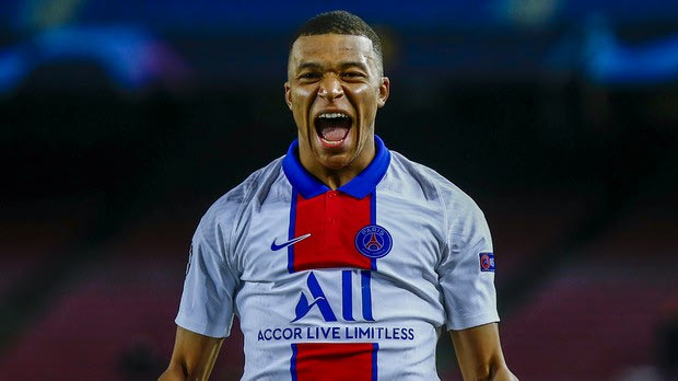 Ο Κίλιαν Εμπαπέ πανηγυρίζει γκολ της Παρί κόντρα στην Μπαρτσελόνα ⓒ 2021 Joan MonfortAssociated Press