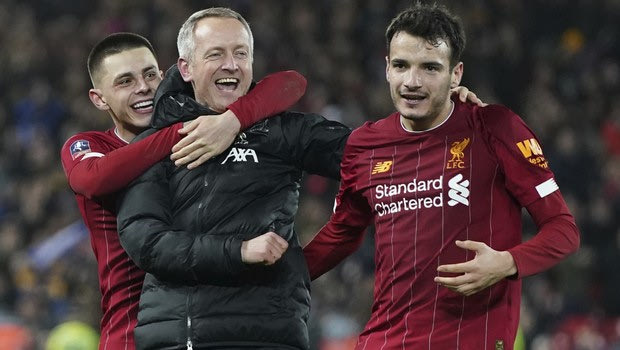 Liverpool's Pedro Chirivella during the English League Cup quarter final soccer match between Aston Villa and Liverpool at Villa Park in Birmingham, England, Tuesday, Dec. 17, 2019. (AP Photo/Rui Vieira)