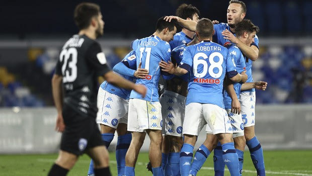 Η Νάπολι ισοφαρίστηκε δύο φορές από την Έμπολι όμως με το γκολ του Πετάνια στο 77' κατάφερε να πάρει τη νίκη με 3-2 στο "Ντιέγκο Μαραντόνα" και να σφραγίσει την πρόκρισή της στην προημιτελική φάση του Κυπέλλου Ιταλίας.