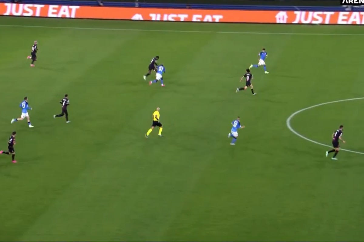 Ο Πορτογάλος πήρε την μπάλα λίγα μέτρα έξω από την περιοχή της ομάδας του, απέφυγε κατά σειρά τους Εντομπελέ, Ντι Λορέντσο και Ραχμάνι διανύοντας σχεδόν εβδομήντα μέτρα και γύρισε την μπάλα στον αμαρκάριστο Ζιρού που έκανε το 1-0.