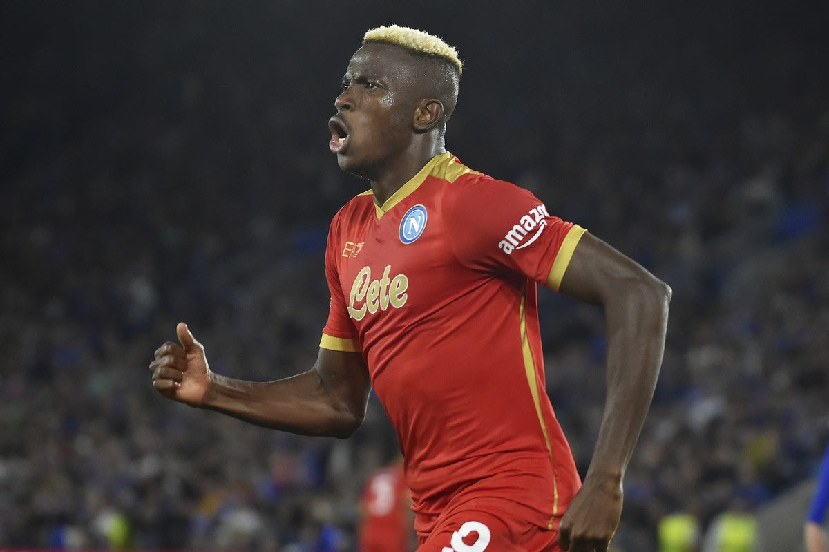 Ο Βίκτορ Οσιμέν στην αναμέτρηση της Νάπολι με τη Λέστερ στους ομίλους του Europa League
