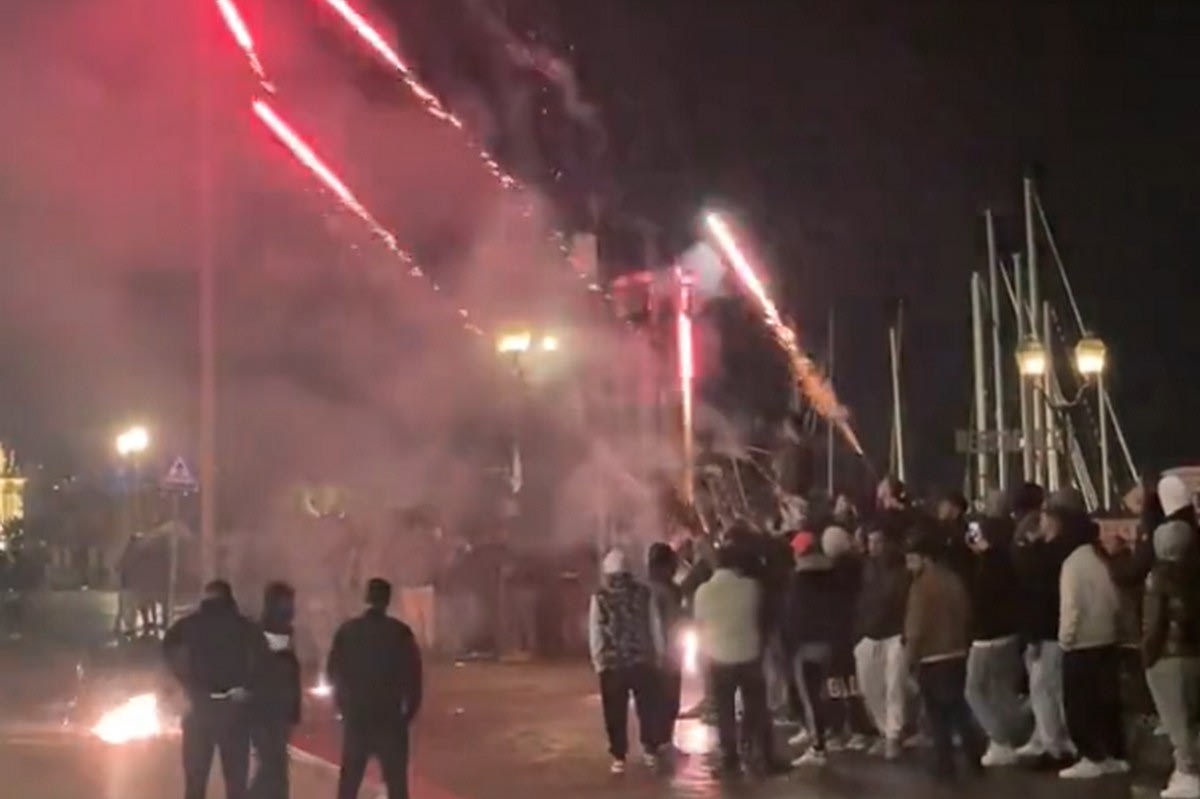 Νάπολι: Οπαδοί των παρτενοπέι έκαναν χαμό με πυροτεχνήματα και συνθήματα έξω απ’ το ξενοδοχείο της Μίλαν