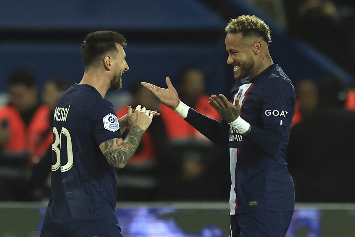 Ο Λιονέλ Μέσι της Παρί πανηγυρίζει με τον Νεϊμάρ γκολ που σημείωσε κόντρα στη Νις για τη Ligue 1 2022-2023 στο "Παρκ ντε Πρενς", Παρίσι | Σάββατο 1 Οκτωβρίου 2022