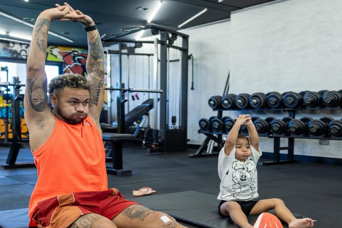 Σε άλλες εικόνες, ο Νεϊμάρ σηκώνει τη μικρή στον αέρα, κάνοντάς τη να ξεσπάσει σε γέλια, ενώ αλλού οι δυο τους κάνουν μαζί ασκήσεις, αποδεικνύοντας πως η γυμναστική μπορεί να γίνει οικογενειακή υπόθεση. Το στιγμιότυπο αποπνέει ανεμελιά και ζεστασιά, μακριά από τη λάμψη των γηπέδων και την πίεση της καριέρας του.