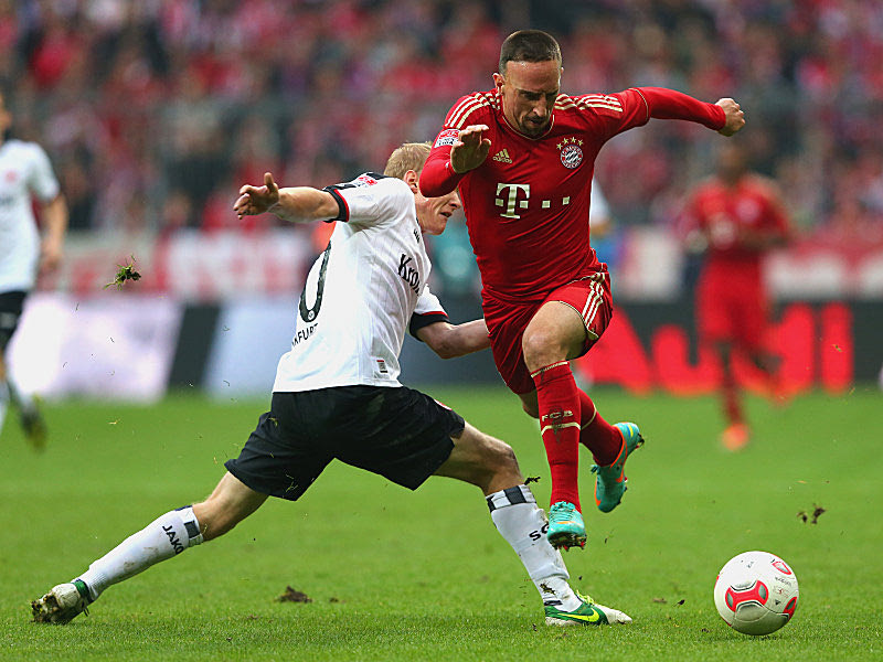 Με τέρματα των Ριμπερί και Αλάμπα η Μπάγερν νίκησε 2-0 την Φρανκφούρτη στο Μόναχο, έτσι την Άιντραχτ πλησίασε στον έναν βαθμό η Ντόρτμουντ, η οποία επικράτησε με 3-1 στην έδρα της Άουγκσμπουργκ.