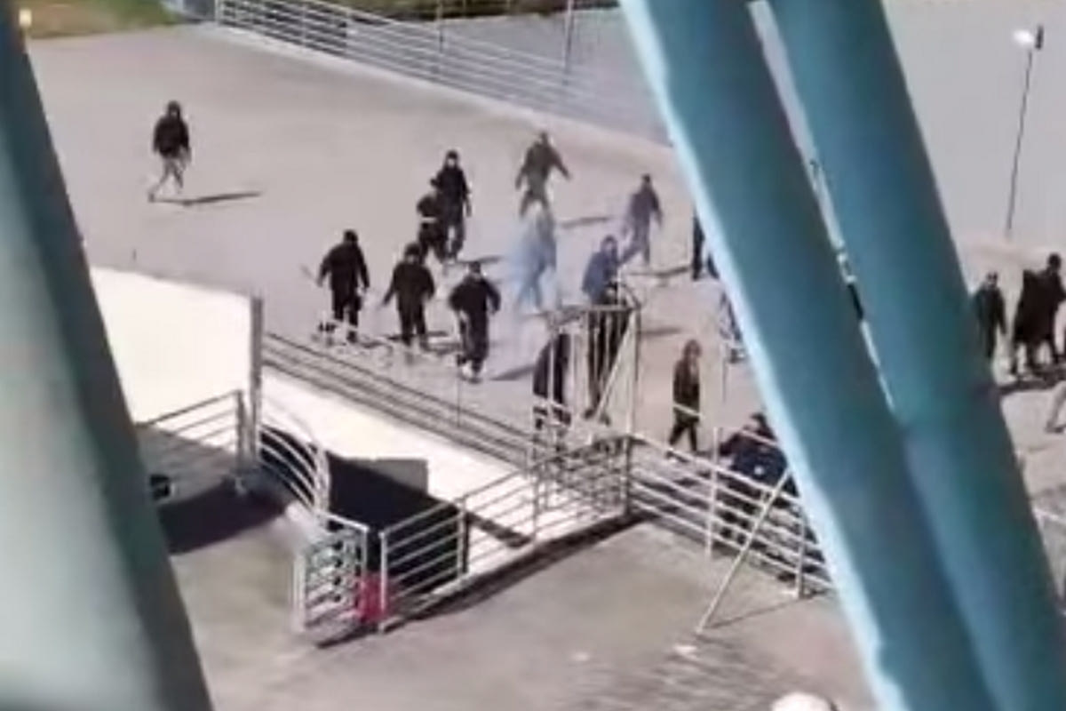 Στο VIDEO που κυκλοφόρησε στα social media φαίνονται οπαδοί των “βυσσινί” να προσπαθούν να εισέλθουν στην εξέδρα, όπου βρίσκονταν οι φίλαθλοι της γηπεδούχου ομάδας.