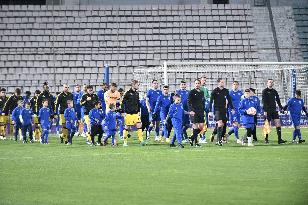 Οι παίκτες των Νίκη Βόλου και Άρη μπαίνουν στον αγωνιστικό χώρο