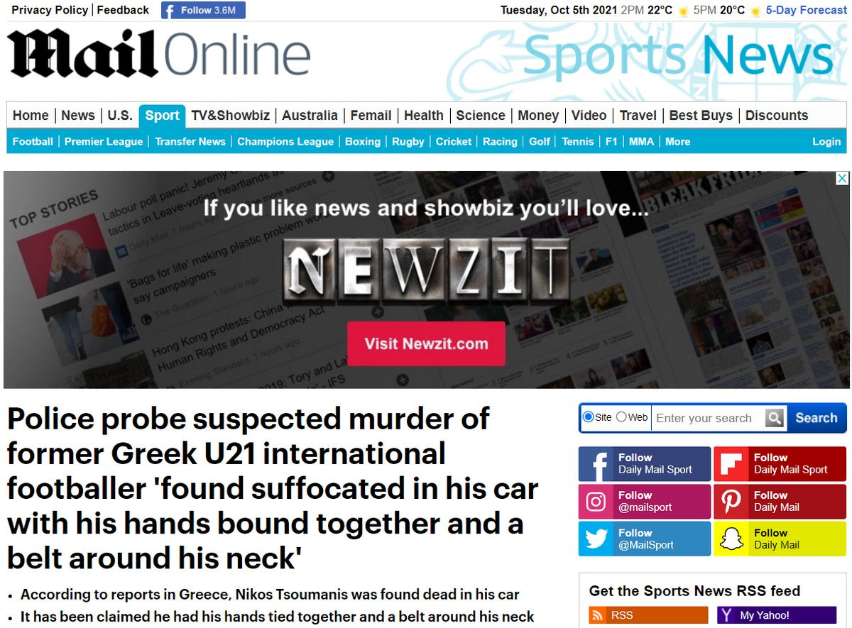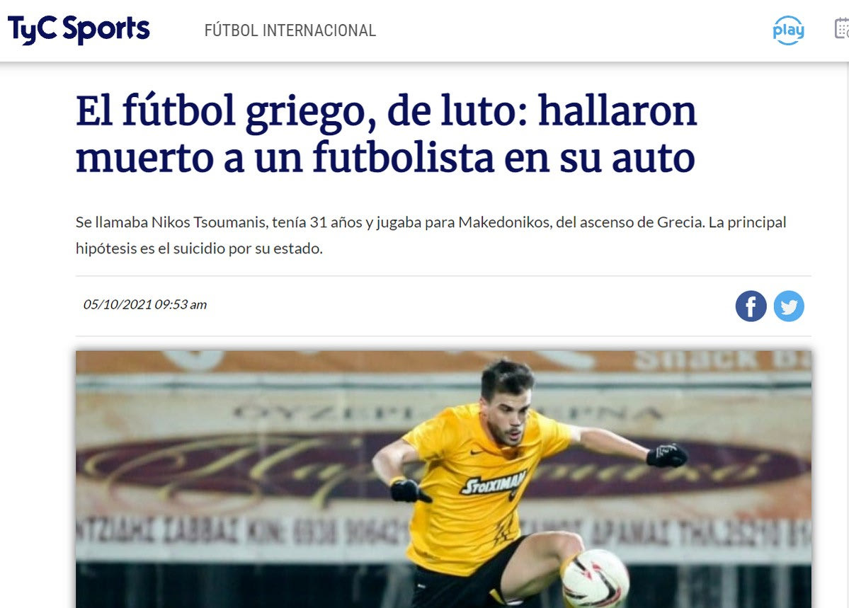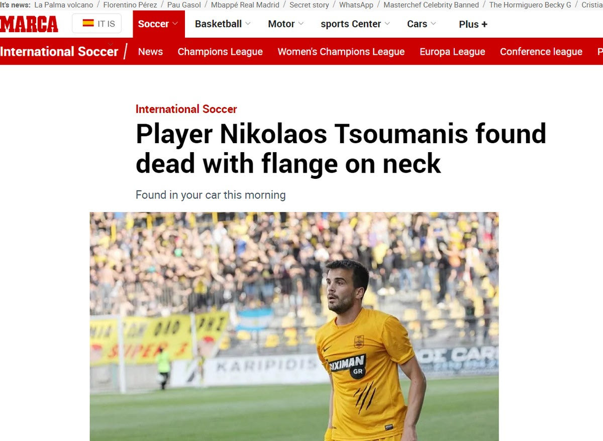 Νίκος Τσουμάνης: Τι γράφει ο ξένος Τύπος για το θάνατο του Έλληνα ποδοσφαιριστή