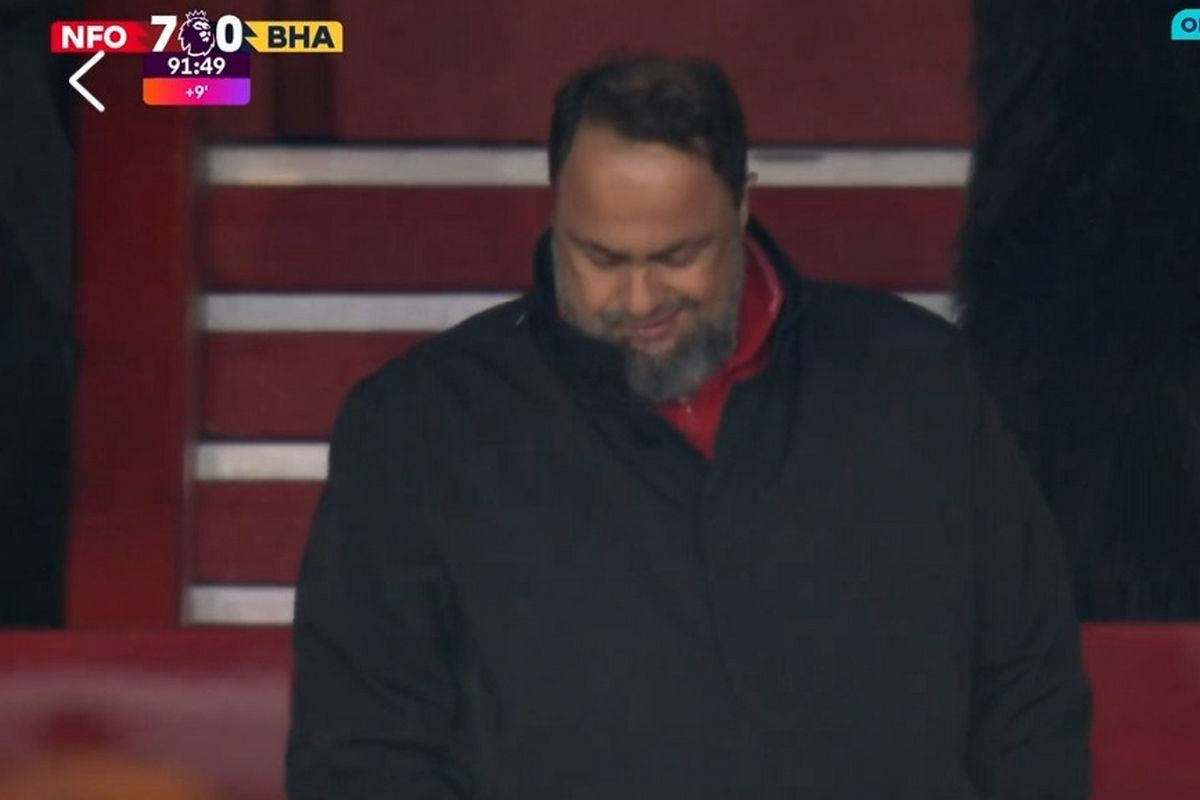 Ο Βαγγέλης Μαρινάκης, όπως σε σχεδόν κάθε εντός έδρας ματς της Νότιγχαμ, έτσι και στη διαστημική επτάρα κόντρα της Μπράιτον έδωσε το παρών στο Σίτι Γκράουντ, με τον ιδιοκτήτη των Κόκκινων να χαμογελάει με αυτά που έβλεπε στο χορτάρι.