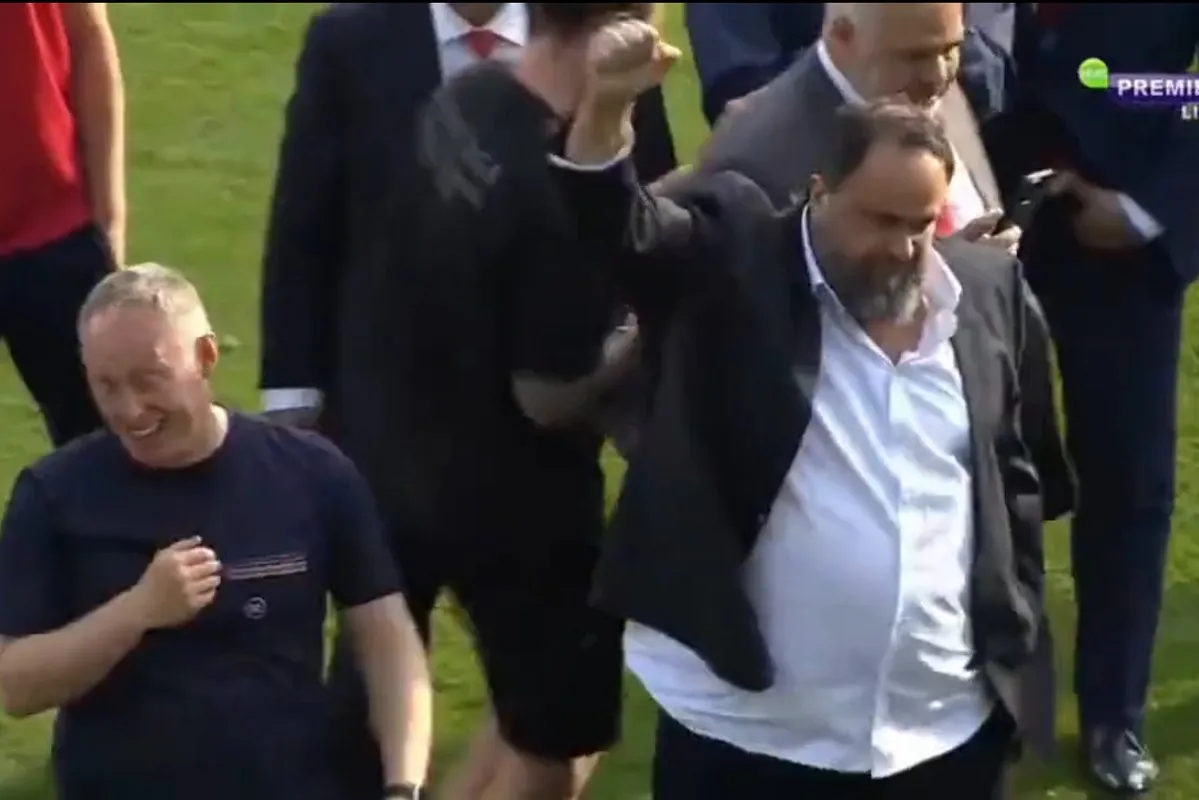 Η Νότιγχαμ, η οποία έχει παραμείνει στην Premier League, έπαιξε το τελευταίο της ματς φέτος, με τον Βαγγέλη Μαρινάκη να δίνει το παρών και να συγχαίρει παίκτες και προπονητή μπροστά από τον κόσμο της ομάδας.