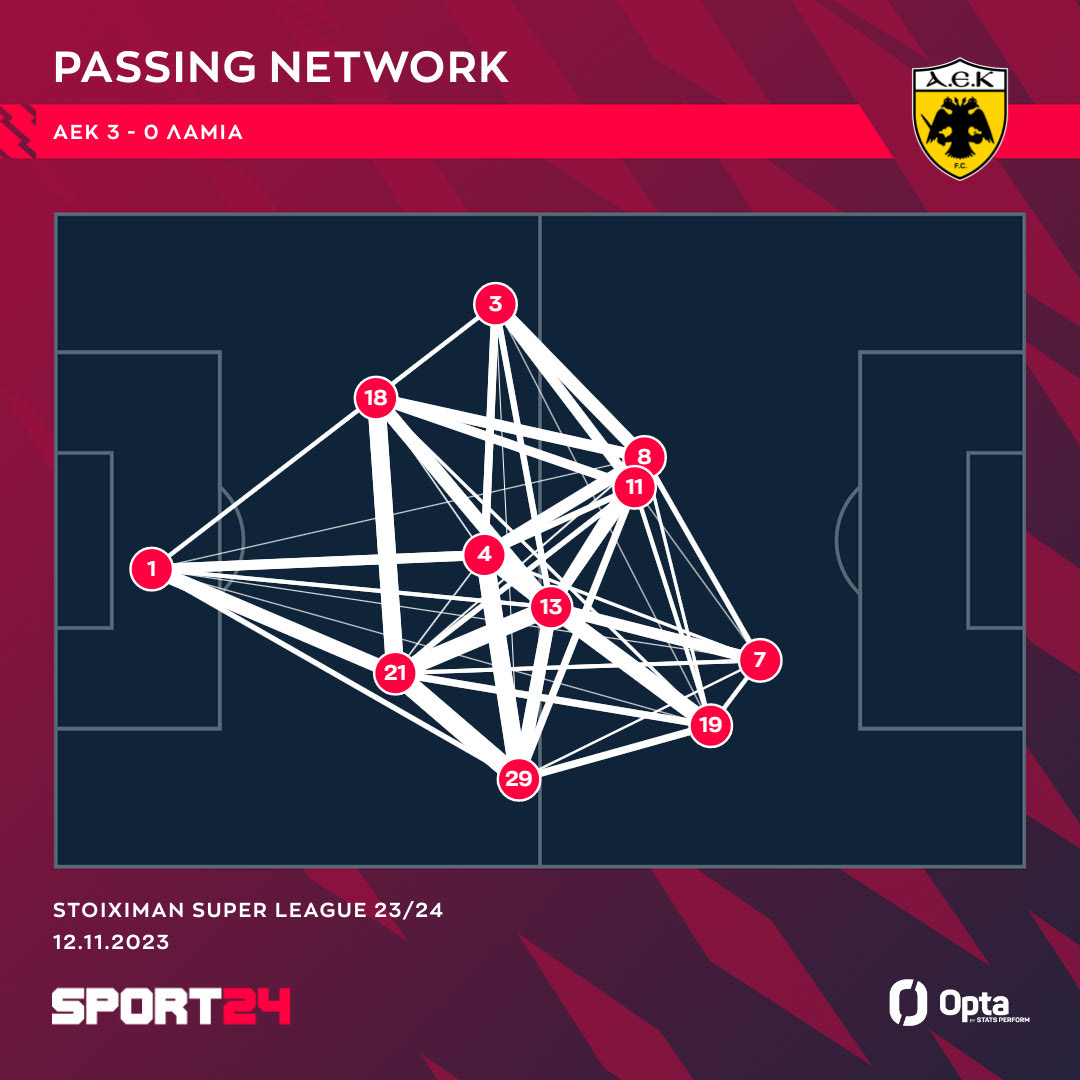 Ο Σιμάνσκι υπηρέτησε για μια ακόμα φορά τον ρόλο που του έχει δώσει ο Ματίας Αλμέιδα από πέρυσι. Ο Πολωνός μέσος (4) στάθηκε κατά κύριο λόγο πίσω από τη μεσαία γραμμή, υποστηρίζοντας τους δύο στόπερ, αλλά και τον Πινέδα (13) που κινήθηκε ελαφρώς πιο μπροστά του για να δημιουργήσει από χαμηλά για την ΑΕΚ.