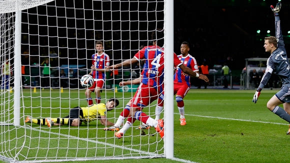 Η Μπάγερν Μονάχου κατέκτησε το 17ο κύπελλο Γερμανίας στην ιστορία της, καθώς νίκησε με 2-0 την Ντόρτμουντ στον τελικό του Βερολίνου, με τέρματα των Άριεν Ρόμπεν και Τόμας Μίλερ στην παράταση.