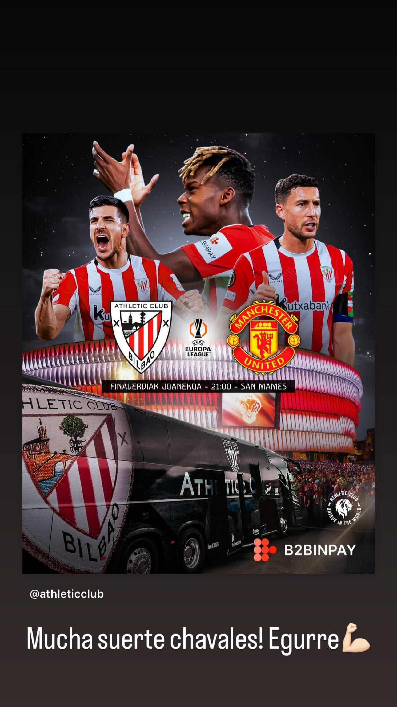 Μέσω ανάρτησης στα social media, ο Ντάνι Γκαρθία έδωσε τις δικές του ευχές στην Αθλέτικ Μπιλμπάο, η οποία μονομαχεί με τη Μάντσεστερ Γιουνάιτεντ για τα ημιτελικά του Europa League.