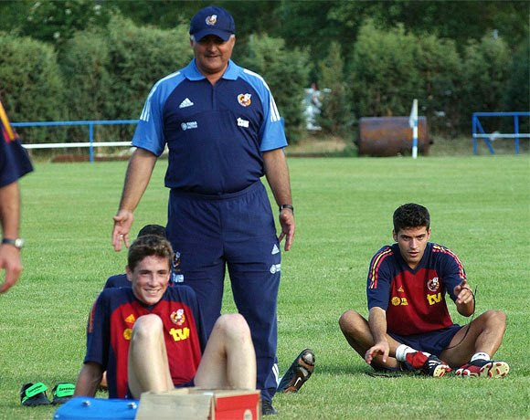 3. Ο Χάρκε (δεξιά) μαζί με τον Τόρες και τον εκλέκτορα της Εθνικής U19, Ινιάκι Σάεθ, λίγες μέρες πριν το Ευρωπαϊκό πρωτάθλημα, στο οποίο η Ισπανία κατέκτησε τον τίτλο (7/7/2002)