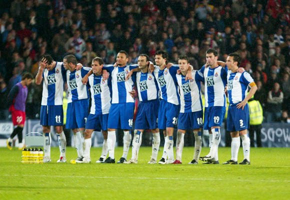 8. Οι παίκτες της Εσπανιόλ παρακολουθούν με αγωνία τη διαδικασία των πέναλτι στον τελικό του UEFA, όπου τελικά έχασαν από τη Σεβίγια. Ο Χάρκε τέταρτος από δεξιά (16/5/2007)