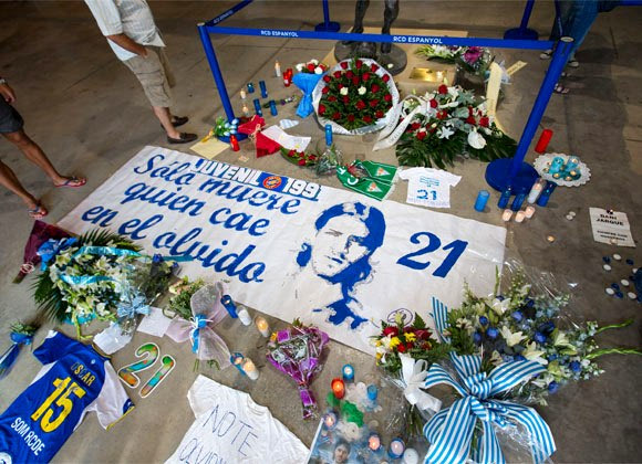 Μόλις ξημέρωσε η 9η Αυγούστου, οι πρώτοι φίλαθλοι άρχισαν να μαζεύονται έξω από τη Θύρα 21 του Cornellà-El Prat, θέλοντας να αφήσουν λίγα λουλούδια ή να ανάψουν το κερί τους. Οι ώρες περνούσαν και οι δεκάδες έγιναν εκατοντάδες, χιλιάδες. Τα πρόσωπα βουβά, δακρυσμένα, σοκαρισμένα από την τραγική είδηση. Μικροί και μεγάλοι, άντρες και γυναίκες, αδυνατούσαν να δεχτούν την πραγματικότητα. Το βράδυ, όταν νύχτωσε, ο προαύλιος χώρος της Θύρας 21 είχε γεμίσει από κασκόλ, σημαίες, φανέλες, φωτογραφίες, αφιερώσεις, λουλούδια και αναμμένα κεριά, ενώ οι εκατοντάδες που βρίσκονταν ακόμα εκεί, χάρισαν ένα ζεστό, αυθόρμητο, τελευταίο χειροκρότημα στον αρχηγό τους.