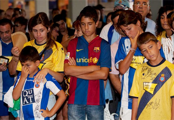 12. Ατελείωτες ουρές από απλούς φίλαθλους έξω από το Cornellà-El Prat που περιμένουν να δώσουν το τελευταίο αντίο στον Ντάνι Χάρκε (11/8/2009)
