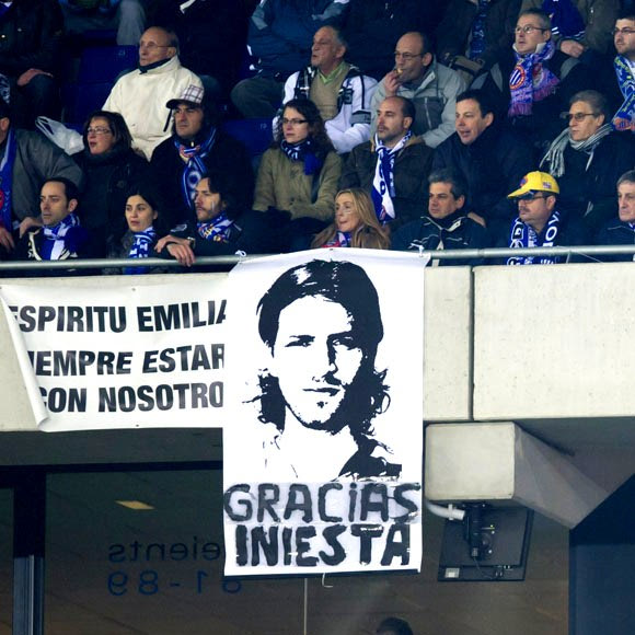22. Η Εσπανιόλ αντιμετωπίζει την Μπαρτσελόνα στο Cornellà-El Prat και οι φίλαθλοί της ευχαριστούν τον Ινιέστα για την αφιέρωσή του στον Χάρκε (18/12/2010)