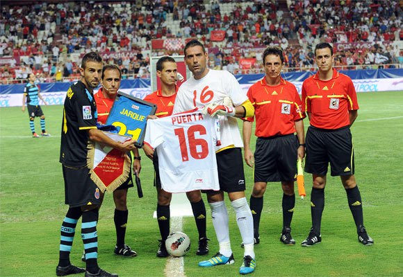 23. Τουρνουά “Αντόνιο Πουέρτα” στη Σεβίλλη. Οι Λουίς Γκαρθία και Παλόπ με τις φανέλες των Χάρκε και Πουέρτα (4/8/2011)