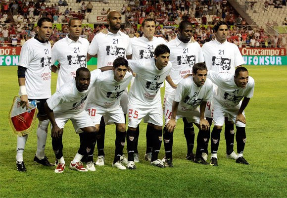 26. Οι παίκτες της Σεβίγια με τους Πουέρτα και Χάρκε στις φανέλες τους, λίγες μέρες μετά τον θάνατο του δεύτερου (21/8/2009)