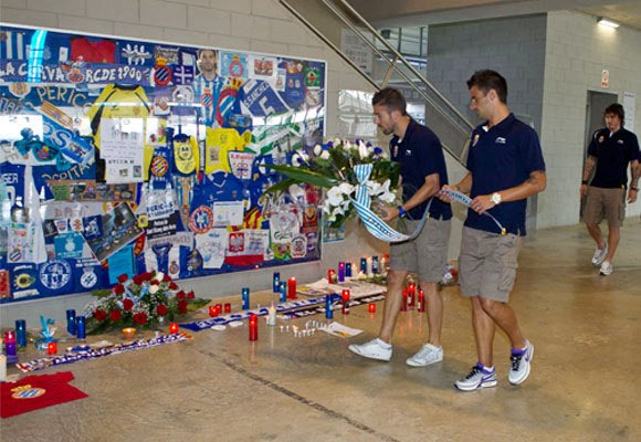 27. Οι παίκτες της Εσπανιόλ στη “γωνιά” του Χάρκε, στο Cornellà-El Prat, την ημέρα της συμπλήρωσης δυο χρόνων από τον θάνατο του αρχηγού των “περίκος” (8/8/2011)