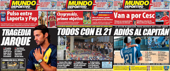 Τα πρωτοσέλιδα της Mundo Deportivo στις 9, 10 και 11 Αυγούστου του 2009.