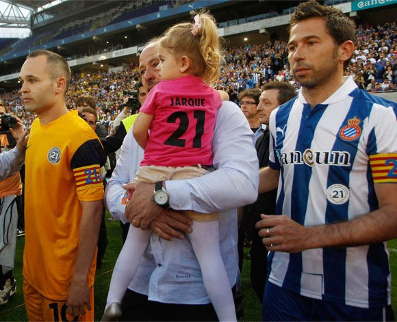 25. Αντρές Ινιέστα και Ραούλ Ταμούδο, οι δυο αρχηγοί στον φιλικό αγώνα στη μνήμη του Ντάνι Χάρκε, ανάμεσα στην Εσπανιόλ και μια μικτή ομάδα παικτών. Στη μέση, ο πατέρας του αδικοχαμένου Ντάνι μαζί με την μικρή Μαρτίνα, την κόρη του “αιώνιου 21” (3/6/2013)