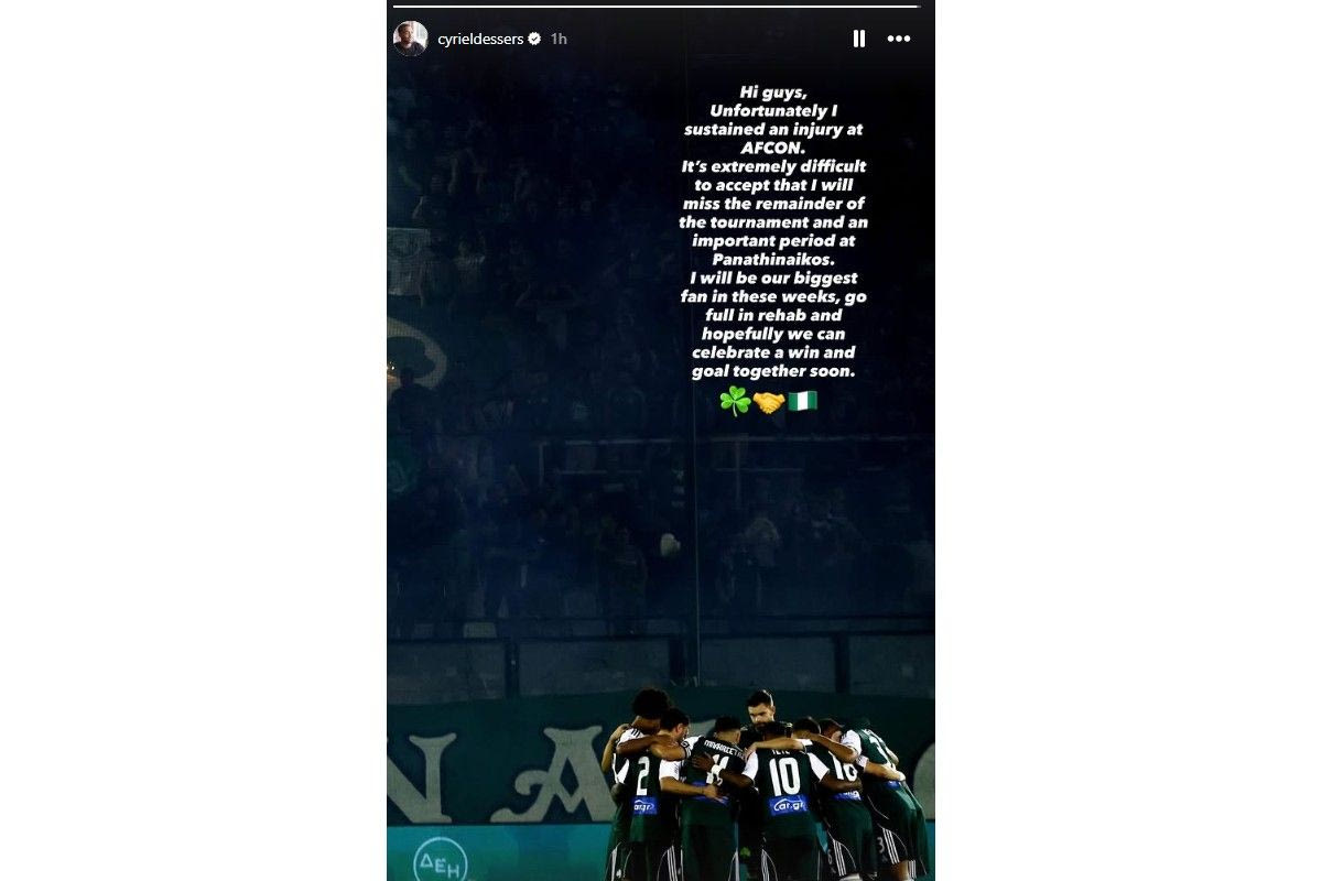 Απογοητευμένος δηλώνει ο Σίριλ Ντέσερς για τον νέο του τραυματισμό, αυτή τη φορά με την εθνική Νιγηρίας στο Copa Africa, που εκ των πραγμάτων θα τον πάει ξανά πίσω. Παρόλα αυτά, με μήνυμά του στα social media, τόνισε πως θα κάνει ό,τι περνά από το χέρι του για να επιστρέψει σύντομα και ακόμη πιο δυνατός στις υποχρεώσεις του Παναθηναϊκού