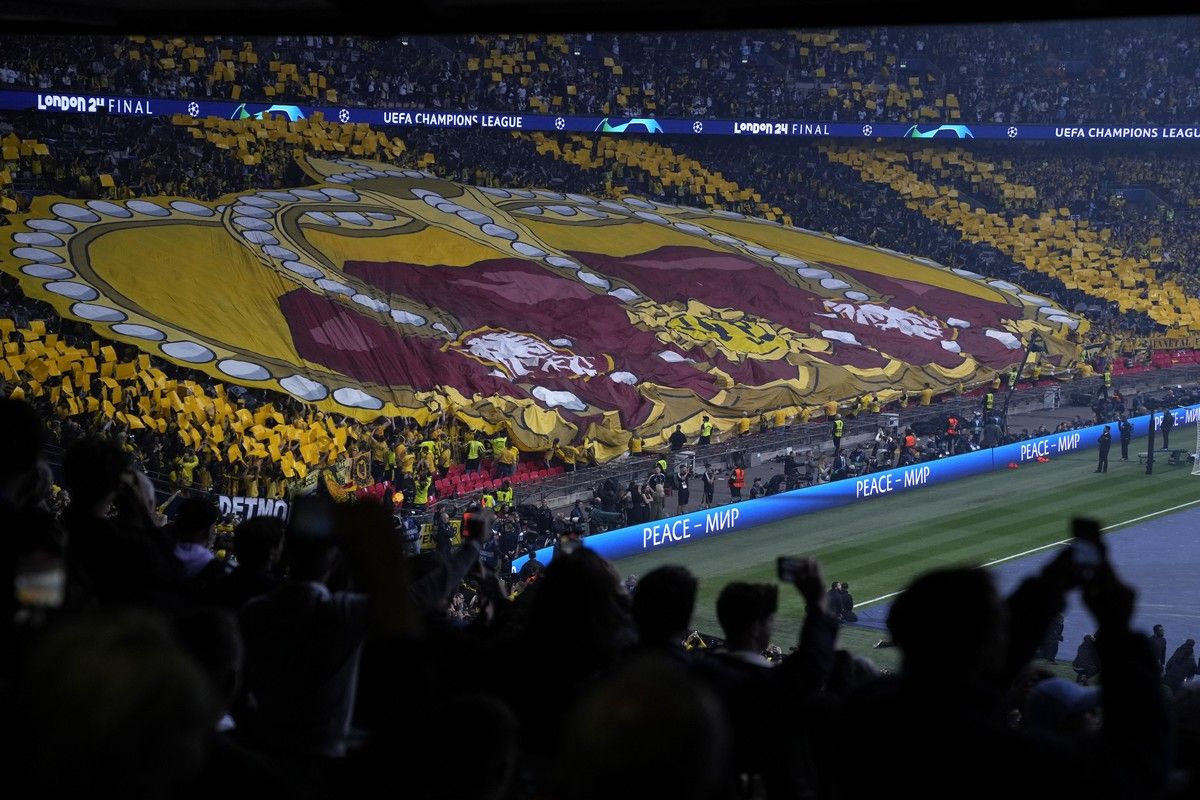 Ρεάλ και Ντόρτμουντ μονομαχούν στον τελικό του Γουέμπλεϊ με στόχο την κατάκτηση του Champions League. Η ατμόσφαιρα ήταν γιορτινή στο Λονδίνο από νωρίς, ενώ το ίδιο συνεχίστηκε και κατά την είσοδο των δύο ομάδων στον αγωνιστικό χώρο με τους οπαδούς των δύο ομάδων να δημιουργούν όμορφη ατμόσφαιρα και να ανεβάζουν εντυπωσιακά κορεό.