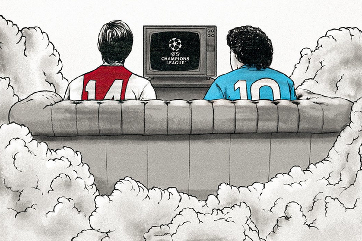 Ο Άγιαξ φρόντισε να τιμήσει με ιδιαίτερο τρόπο την κόντρα του με την Νάπολι στο Champions League, προαναγγέλοντας το συγκεκριμένο ματς με ένα υπέροχο εικαστικό, στο οποίο δεσπόζουν οι εμβληματικές φιγούρες των Κροίφ και Μαραντόνα.