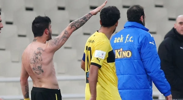 Ο νεαρός άσος ξέσπασε μετά την επίτευξη του τέρματος και έτρεξε στο κόρνερ, όπου έβγαλε τη φανέλα του. Ο τρόπος που το πανηγύρισε το τέρμα του, όμως, προκάλεσε πολλά ερωτήματα, καθώς σήκωσε το δεξί του χέρι προς την εξέδρα, κατά τρόπο που θυμίζει ναζιστικό χαιρετισμό.