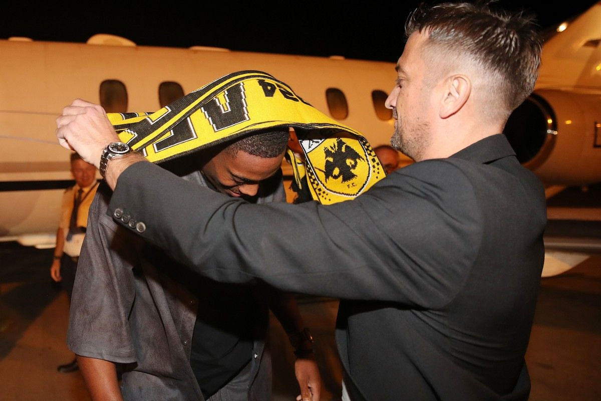 Κατά την άφιξή του στο “Ελευθέριος Βενιζέλος” τον περίμεναν για να τον αποθεώσουν χιλιάδες οπαδοί των κιτρινόμαυρων ενώ εκείνος που υποδέχτηκε τον Γάλλο στράικερ στο “Ελευθέριος Βενιζέλος” ήταν ο ξάδερφος του Μάριου Ηλιόπουλου, Αντώνης.