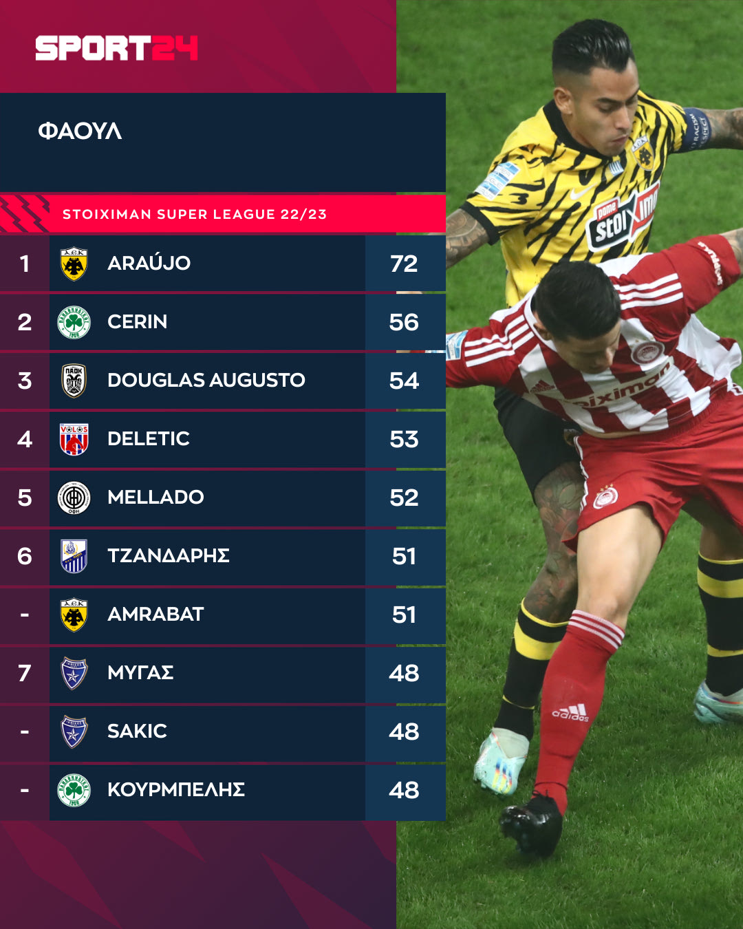 Αυτή είναι η λίστα των παικτών με τα περισσότερα φάουλ στη φετινή Super League.