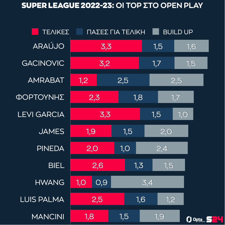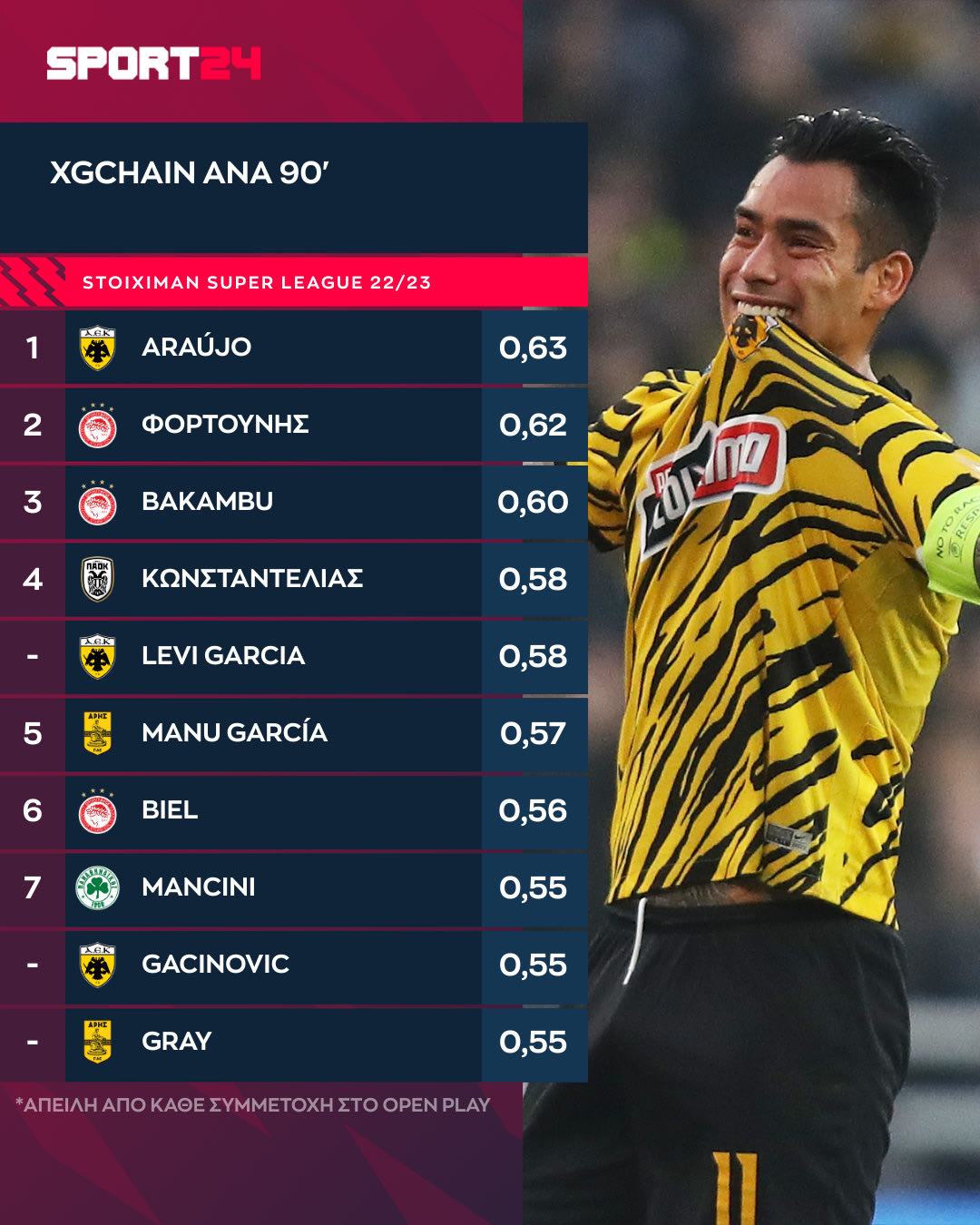 Ο Αραούχο πάνω από όλους. Ο Αργεντινός είχε 3.3 τελικές ανά 90′ στο open play, όσες και ο Λιβάι Γκαρσία.