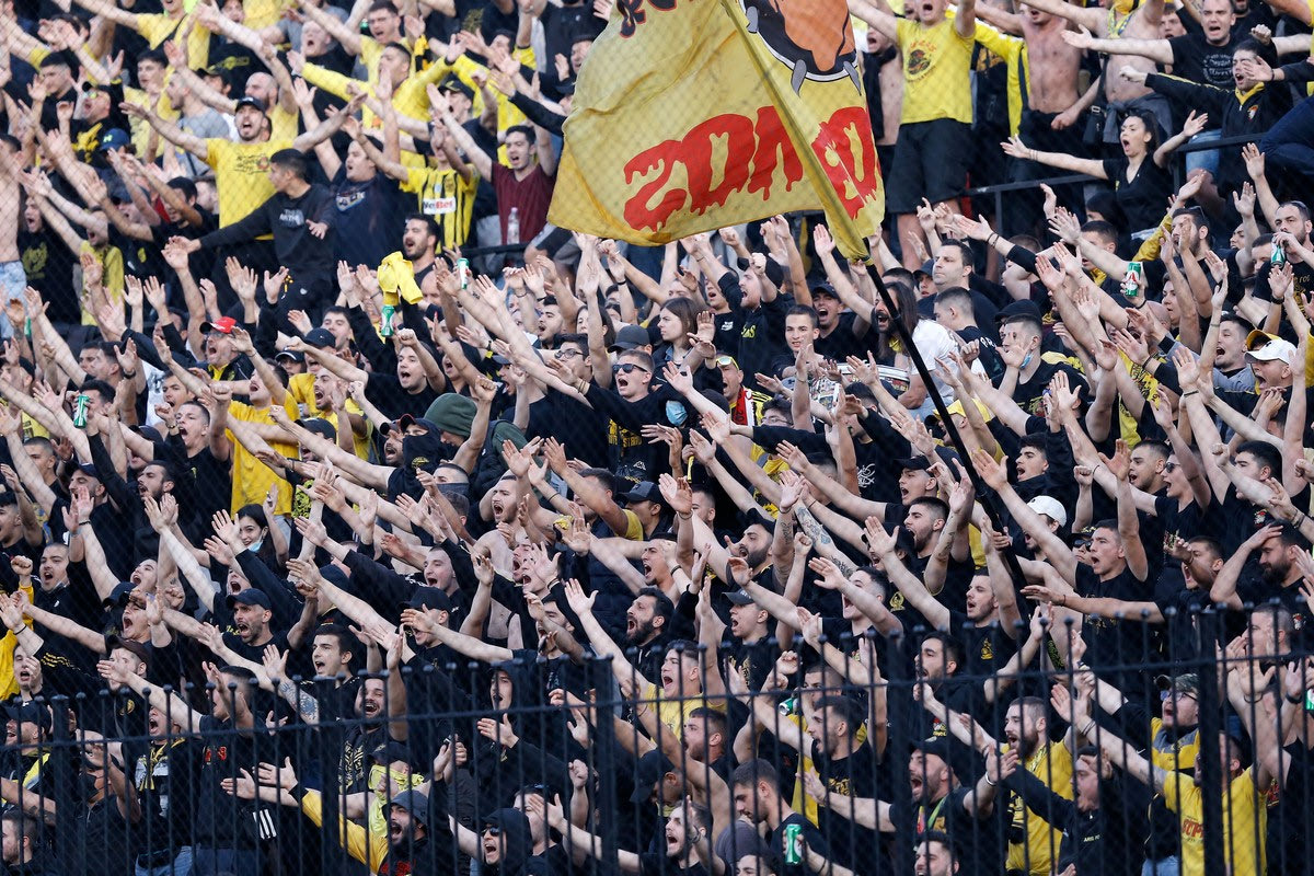 Οπαδοί του Άρη στις εξέδρες του "Κλεάνθης Βικελίδης" σε ματς πρωταθλήματος κόντρα στην ΑΕΚ | 14 Μαϊου 2022